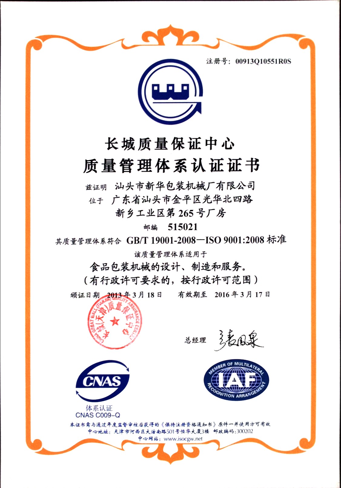 熱烈祝賀新華機(jī)械順利通過(guò)ISO9001:2008質(zhì)量管理體系認(rèn)證